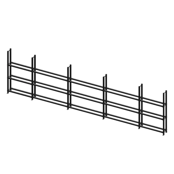 Dřevník je složen z 5 sloupců, 2 jsou šíře 150 cm a 3 šíře 180 cm. Umístění sloupců je variabilní. 150-180-180-180-150 nebo 180-150-180-150-180 i jakékoliv další varianty jsou možné.