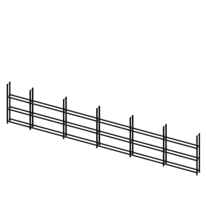 Celková šíře 8,85 m. 1x 100 cm a 5x 150 cm sloupec.